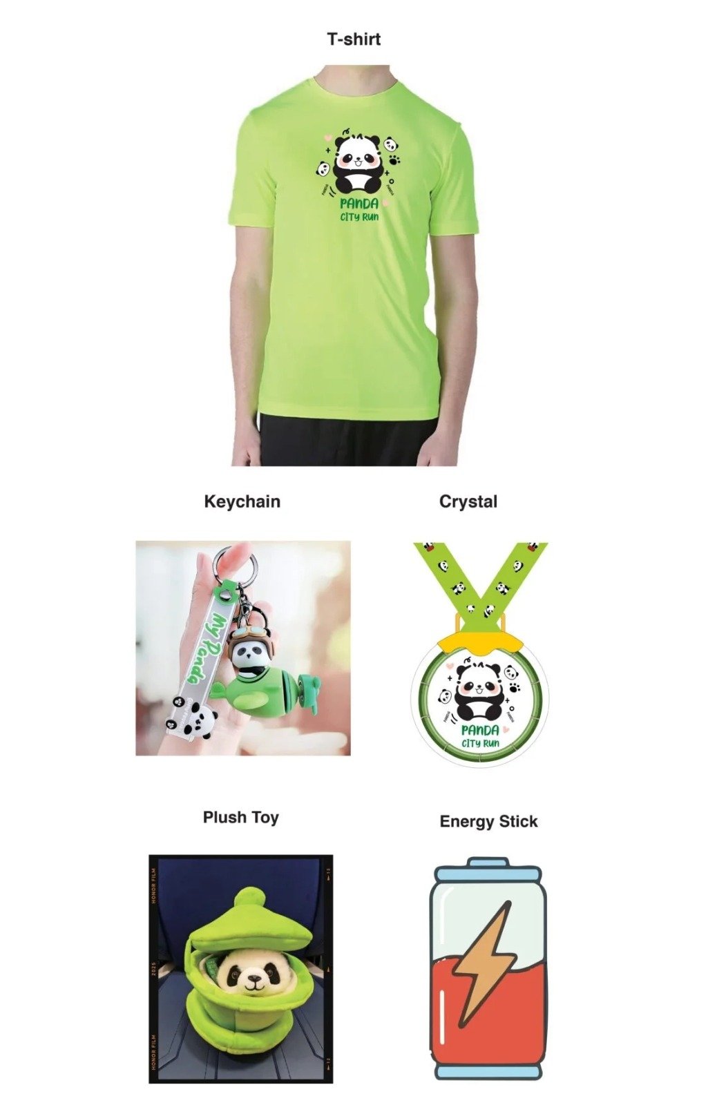 Event T-shirt, Mini Blind Box, Crystal Medal, Panda Keychain, Plush Toy